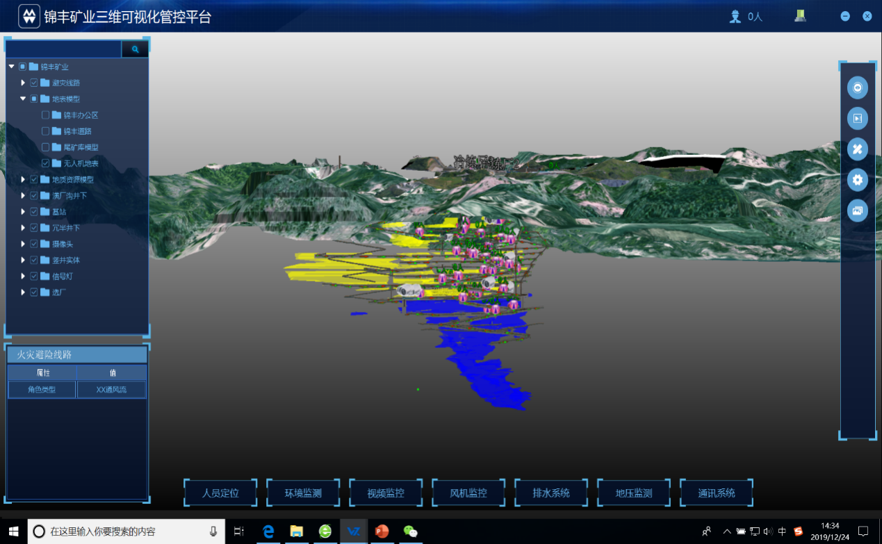 (1)通過三維礦業軟件及其它建模軟件建立礦區地表、井下礦體、巷道三維模型和設備模型